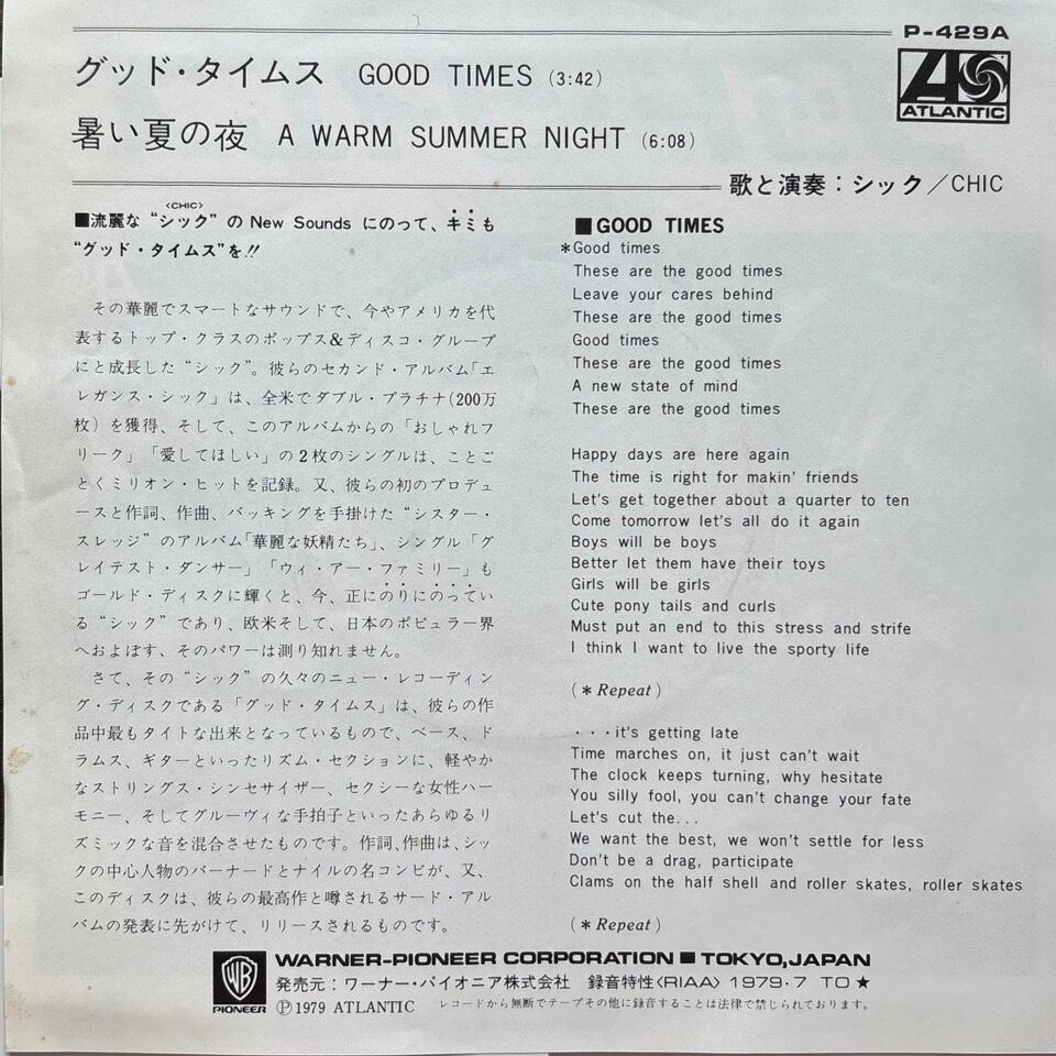 Chic / Good Times(グッド・タイムス)