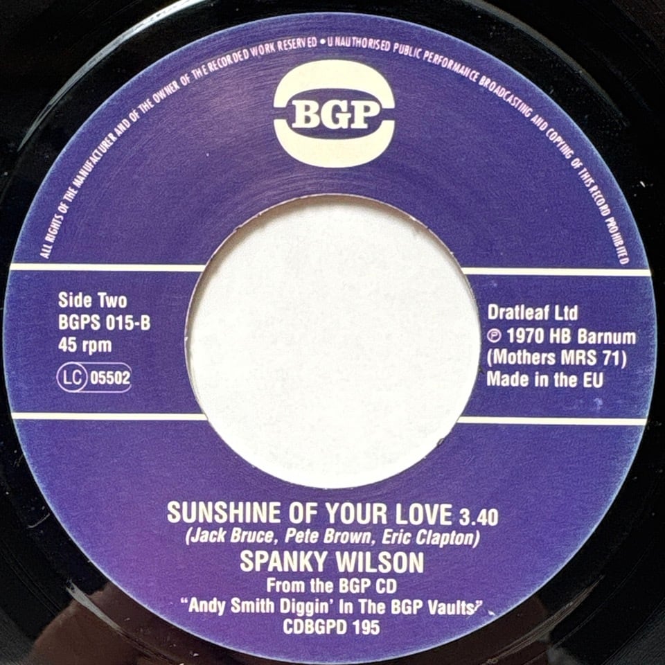 B面 “Sunshine Of Your Love” は力強いドラムブレイクから始まる Cream の名曲カヴァー。