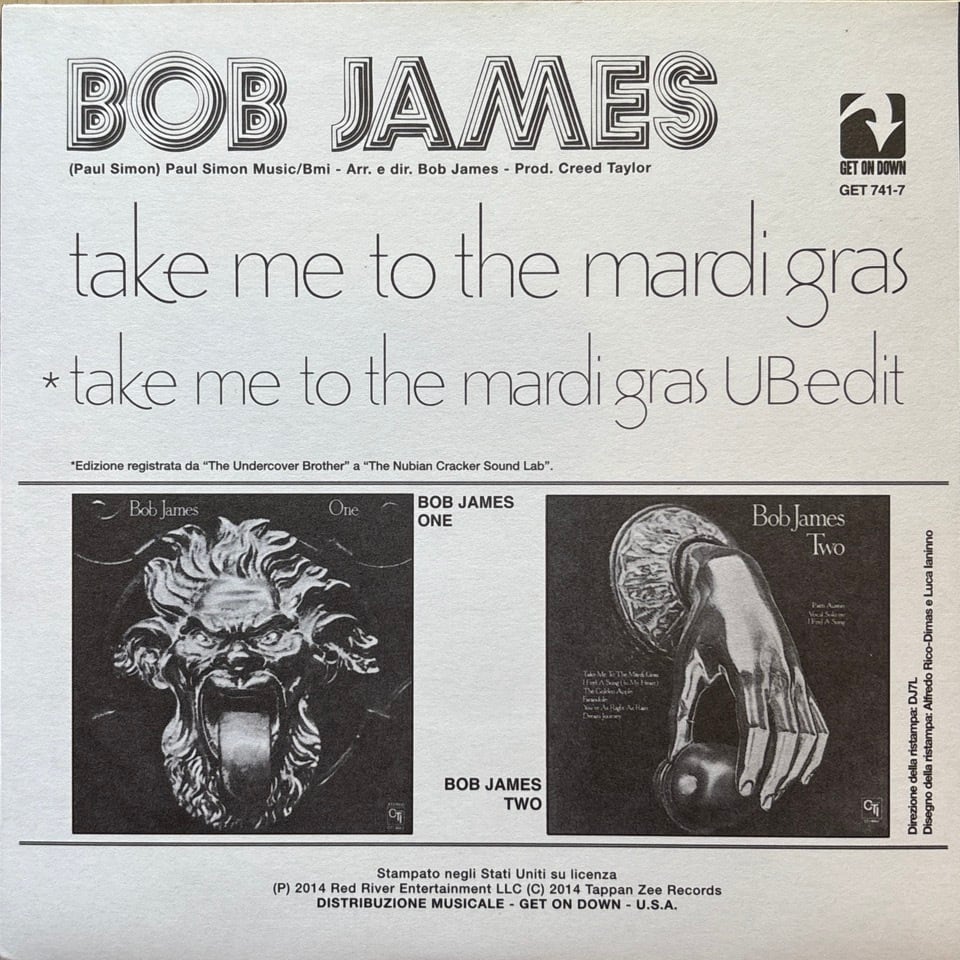 B面には冒頭のブレイクを長回しした “Take Me To The Mardi Gras (UB Edit)” を収録。
