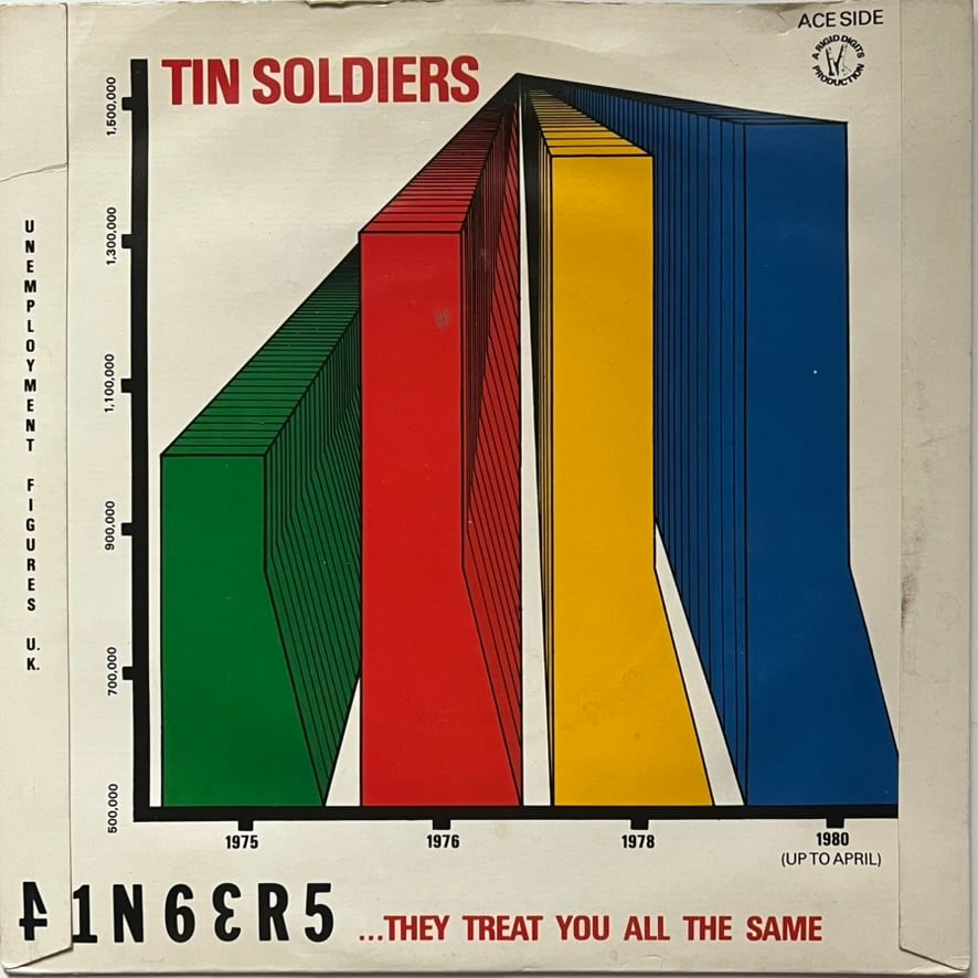 B面 "Tin Soldiers" は徐々に盛り上がっていくシンガロング・タイプのパンク・ロック名曲。