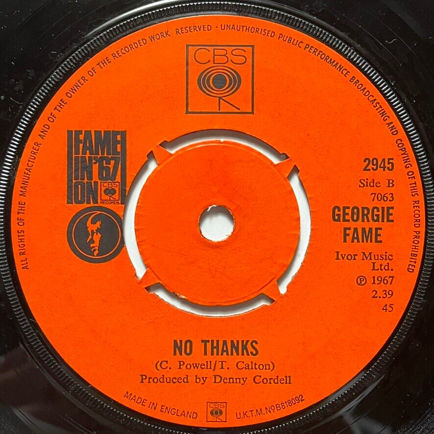 イギリスのヴォーカル/鍵盤奏者 ジョージー・フェイムが1967年にリリースした両面アルバム未収録シングル。