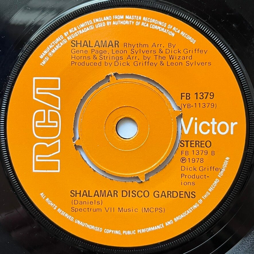 B面 "Shalamar Disco Gardens" は力強いリズムが印象的なブギー・ファンク。