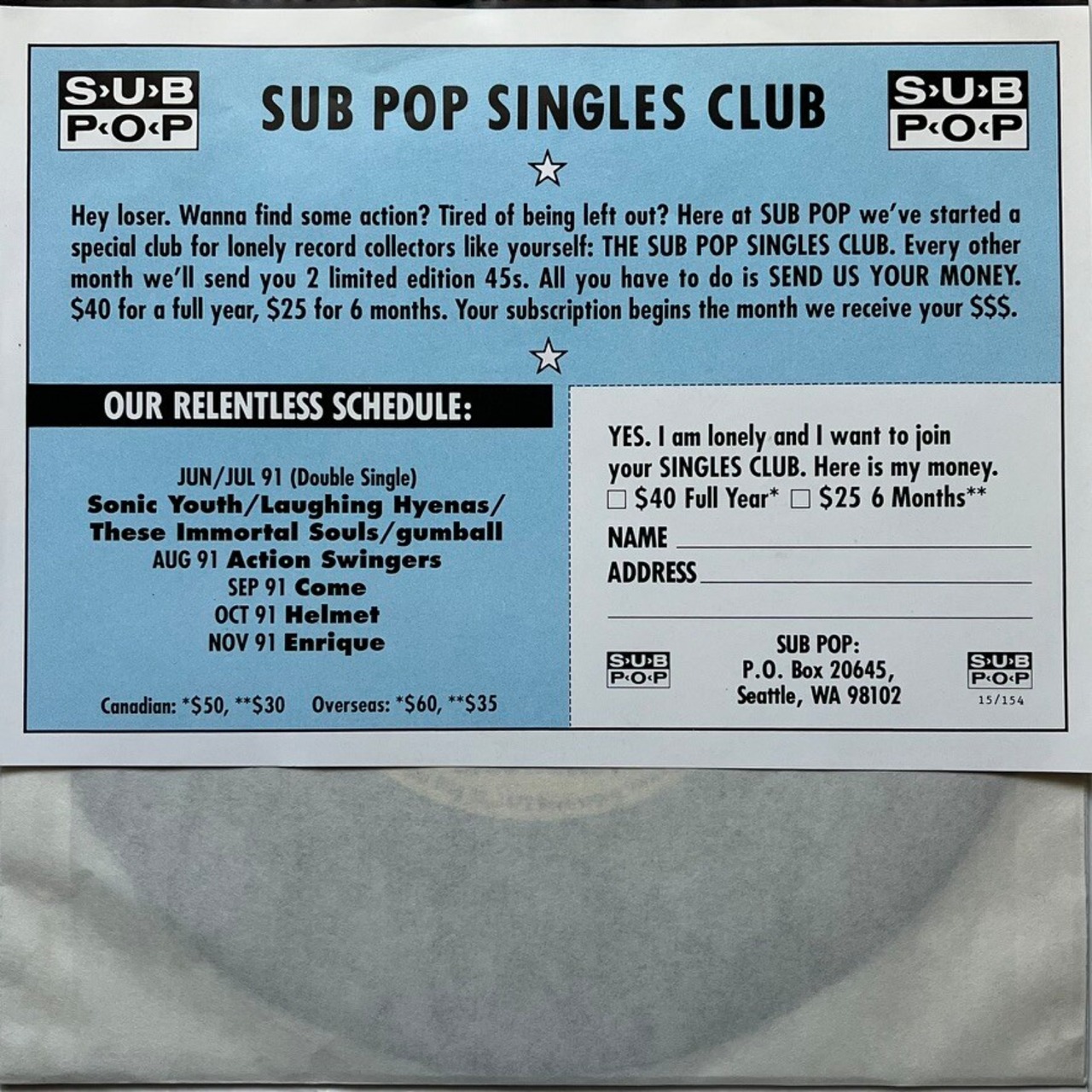 7inch / Sub Pop / USA & Europe / 1991