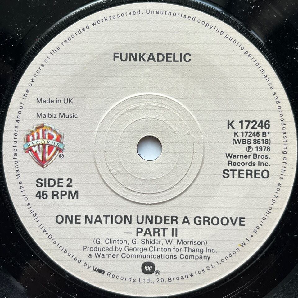 B面 ”One Nation Under A Groove - Part II は EPMD "So Wat Cha Sayin'" で引用された印象的なコーラスから始まります。