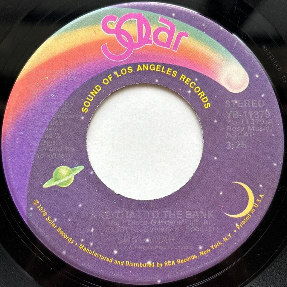 B面 "Shalamar Disco Gardens" は力強いリズムが印象的なブギー・ファンク。